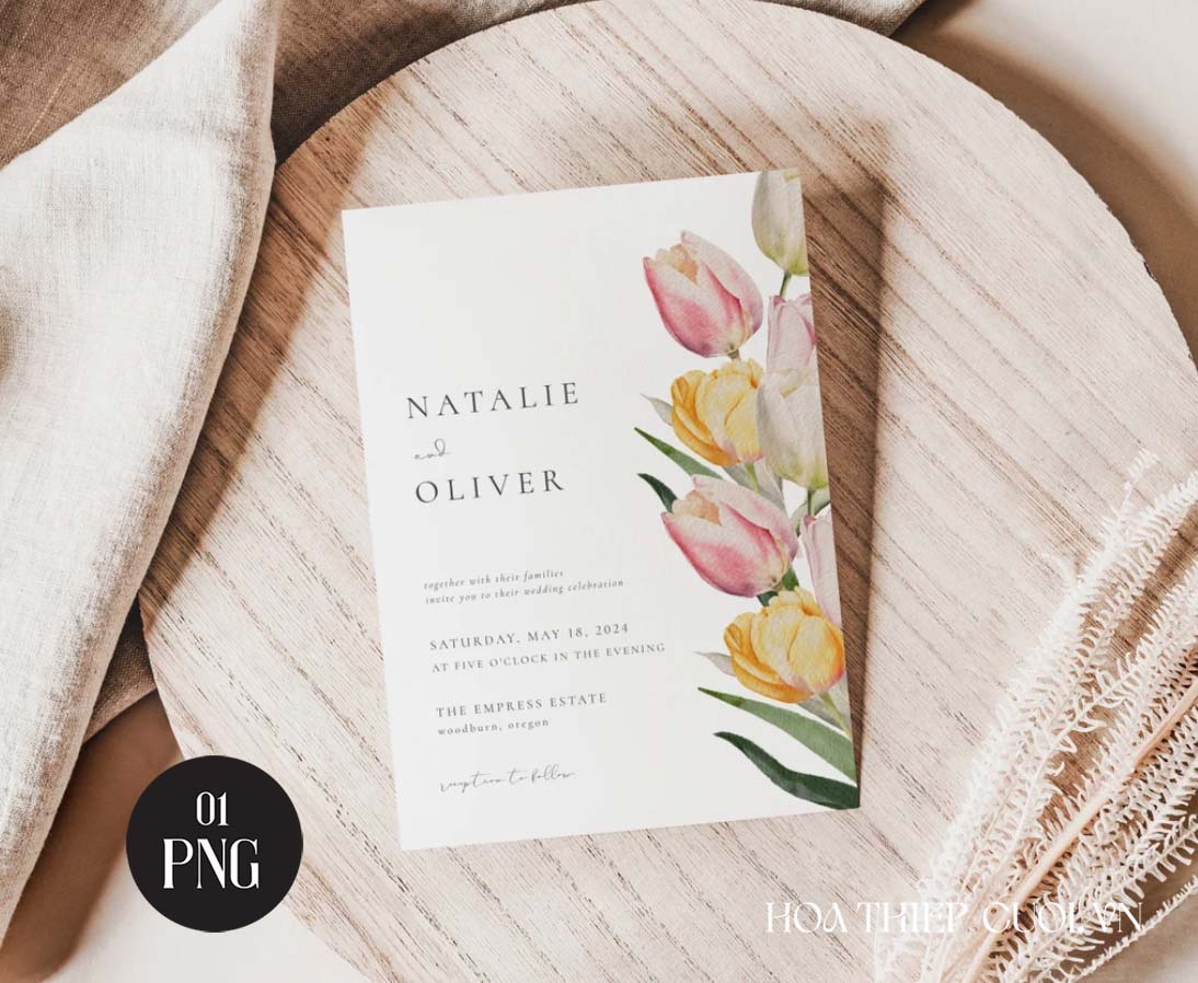 Đặt mua #05 Hoa tulip màu nước - Vẽ hoa tulip - Bộ sưu tập mùa xuân - Hoa tulip mùa xuân - Mùa xuân hoa - Thiệp đám cưới