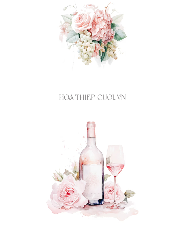 #09 Bộ sưu tập trang trí thiệp cưới – Hoa hồng – Rượu vang – Thiệp sắc tông hồng