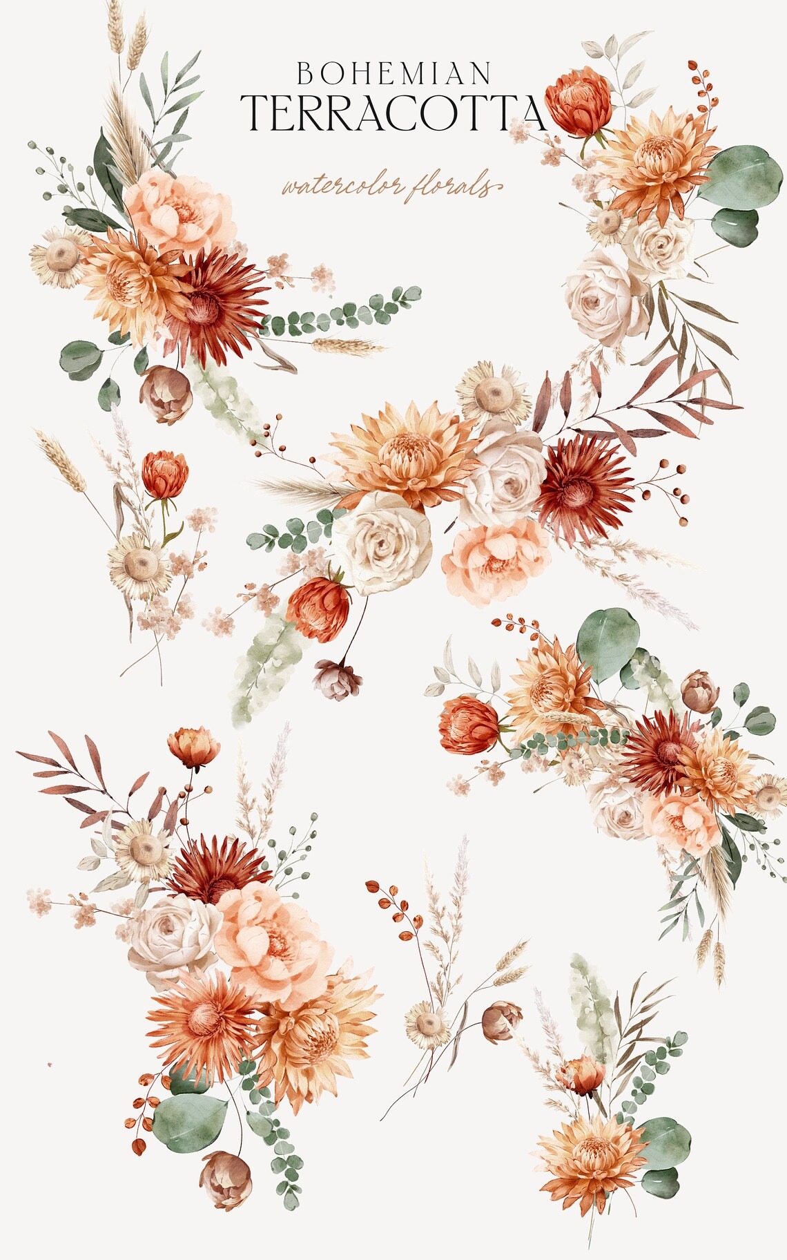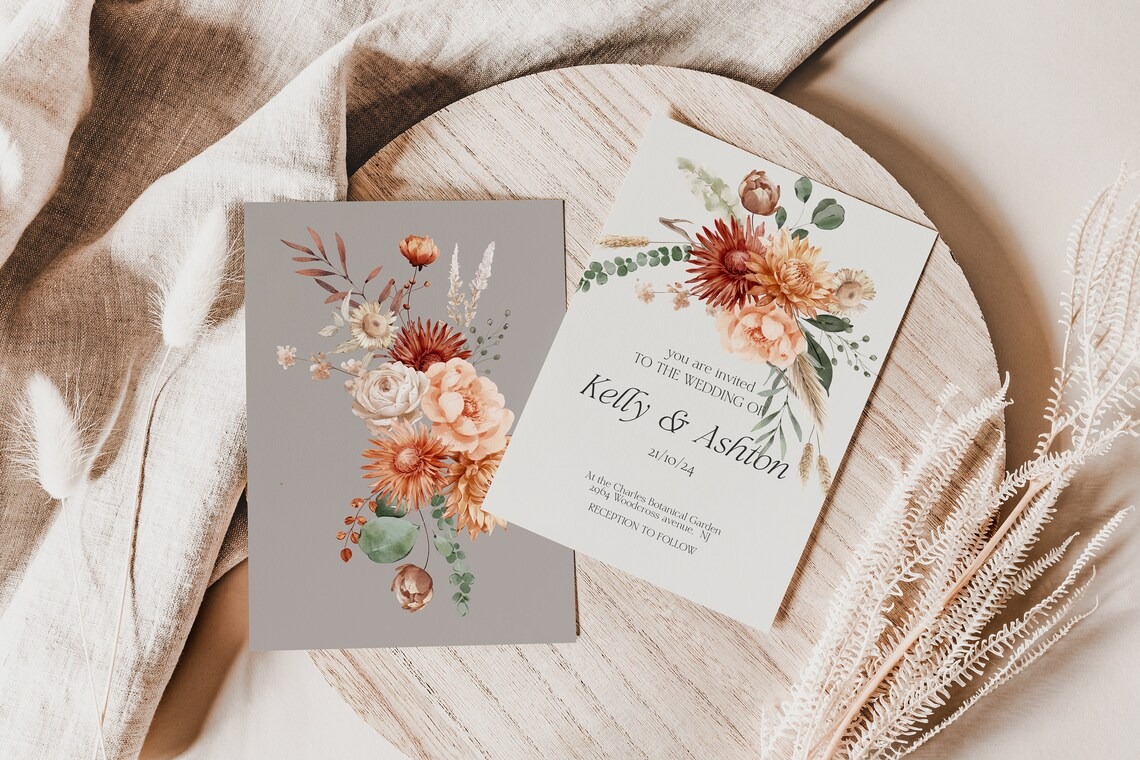 #102 Bó hoa mùa thu – Hoa phong cách Bohemian – Bó hoa phong cách hiện đại – Thiệp mời Bohemian