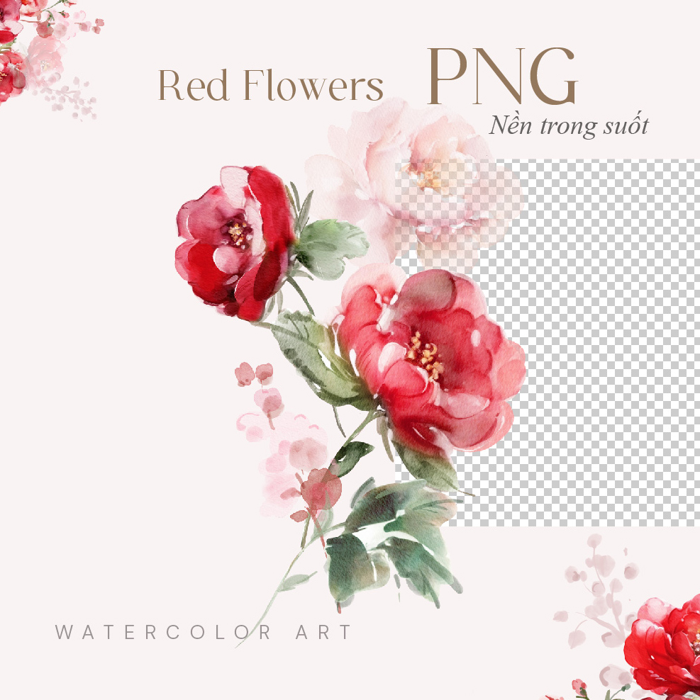 Đặt mua #11 Hoa sắc đỏ truyền thống - Sắc đỏ ngày xuân - Thiệp mùa xuân - Tông màu đỏ - Hoa trang trí - Hoa màu nước