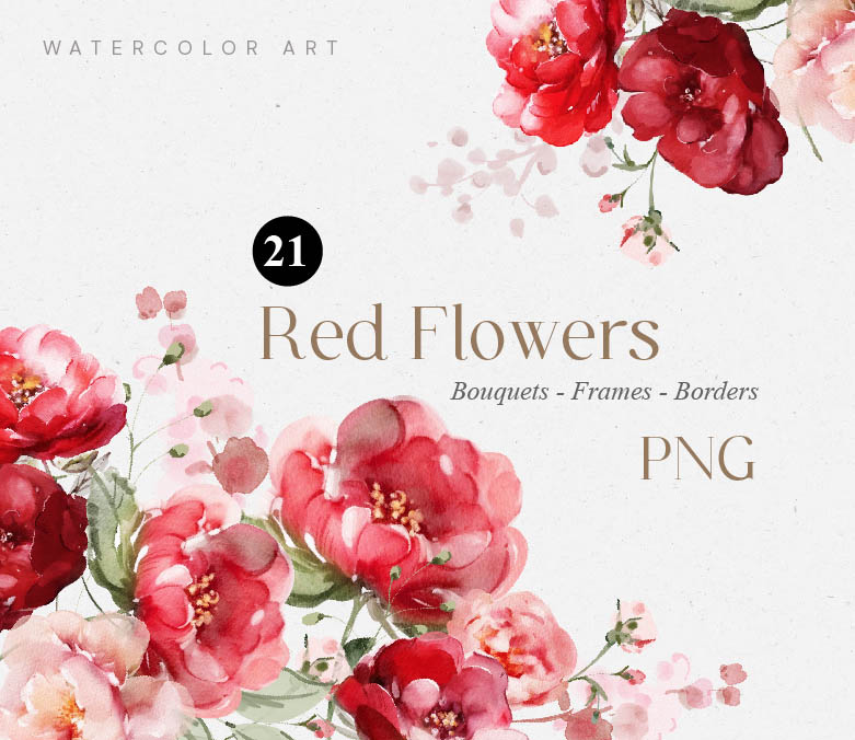 #11 Hoa sắc đỏ truyền thống – Sắc đỏ ngày xuân – Thiệp mùa xuân – Tông màu đỏ – Hoa trang trí – Hoa màu nước