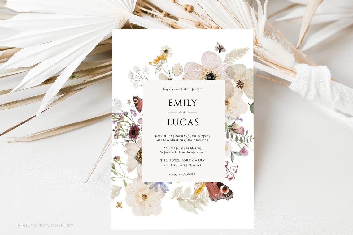 #122 Hoa ép – Hoa khô ép – Hoa ép vẽ màu nước – Thiệp kiểu hoa dại ép