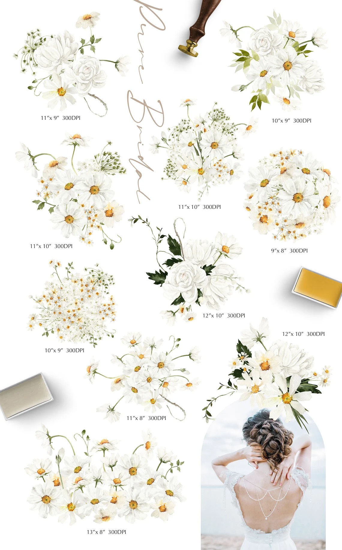 Đặt mua #133 Hoa trắng tinh khôi - Hoa cúc vẽ - Bó hoa cúc - Hoa nghệ thuật - Thiệp cưới hoa cúc tinh khiết