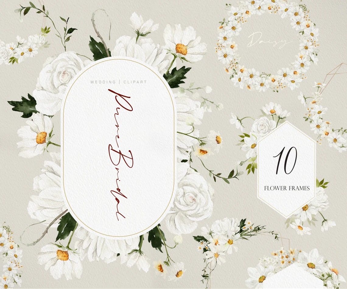 Đánh giá #134 Hoa trắng tinh khôi – Hoa cúc vẽ – Bó hoa cúc – Hoa nghệ thuật – Thiệp cưới hoa cúc tinh khiết