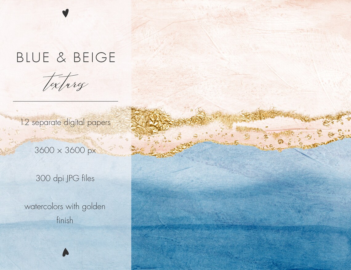 #14 Gold & Blue 12 watercolor textures – Phiên bản đặc sắc