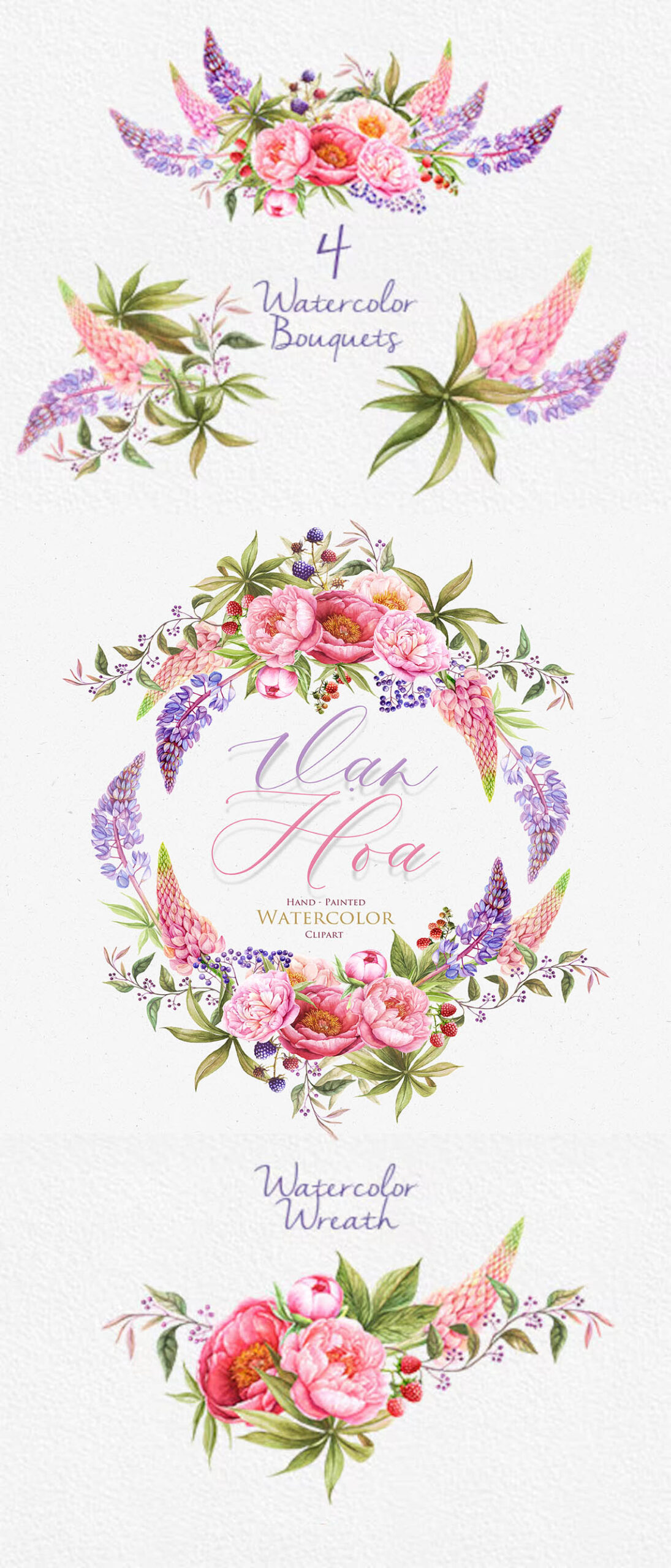 Đặt mua #153 Vạn hoa - Hoa thiệp cưới - Hoa mùa xuân - Hoa vẽ màu nước - Sắc xuân
