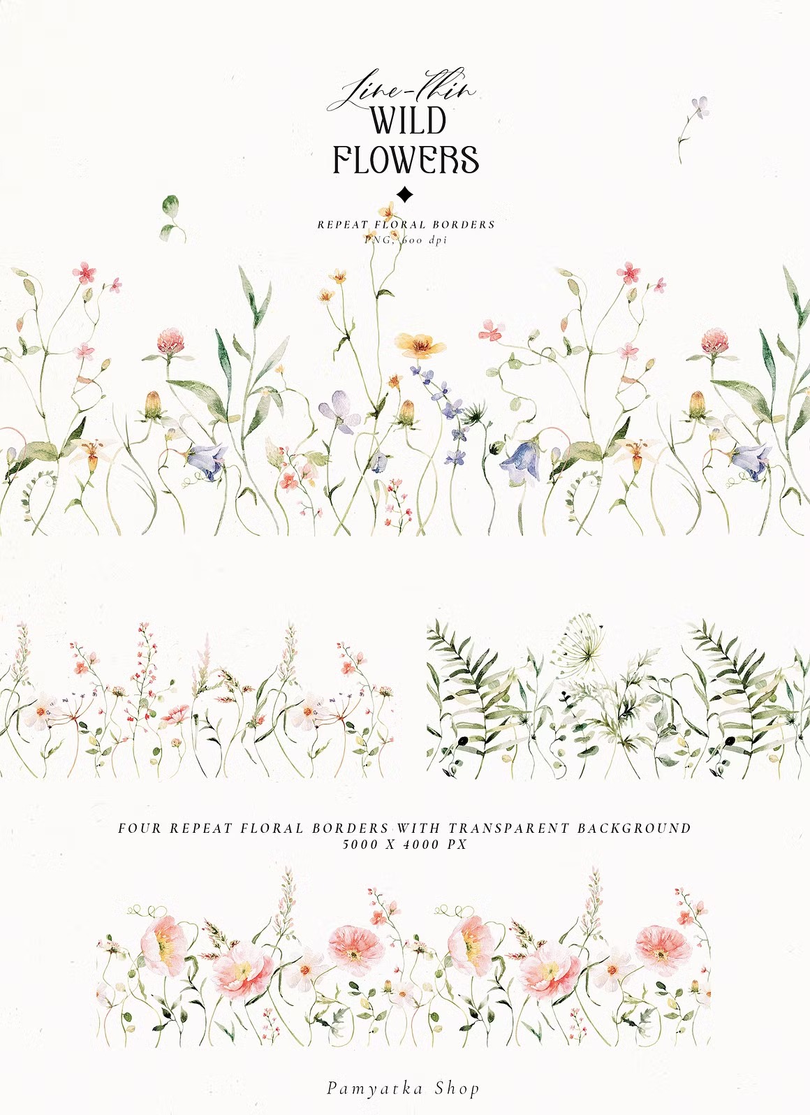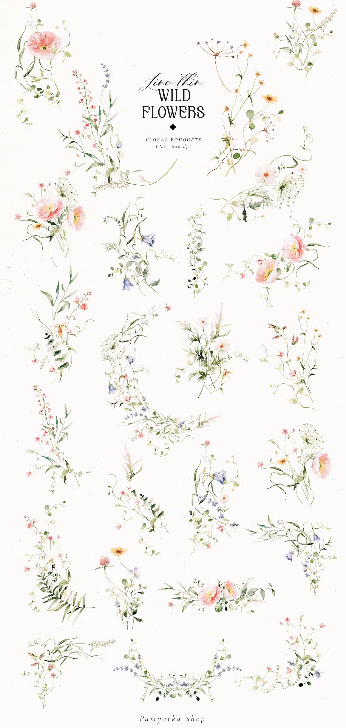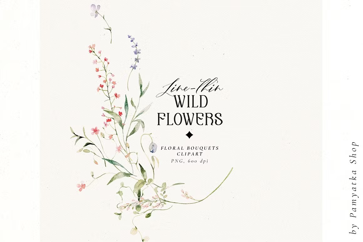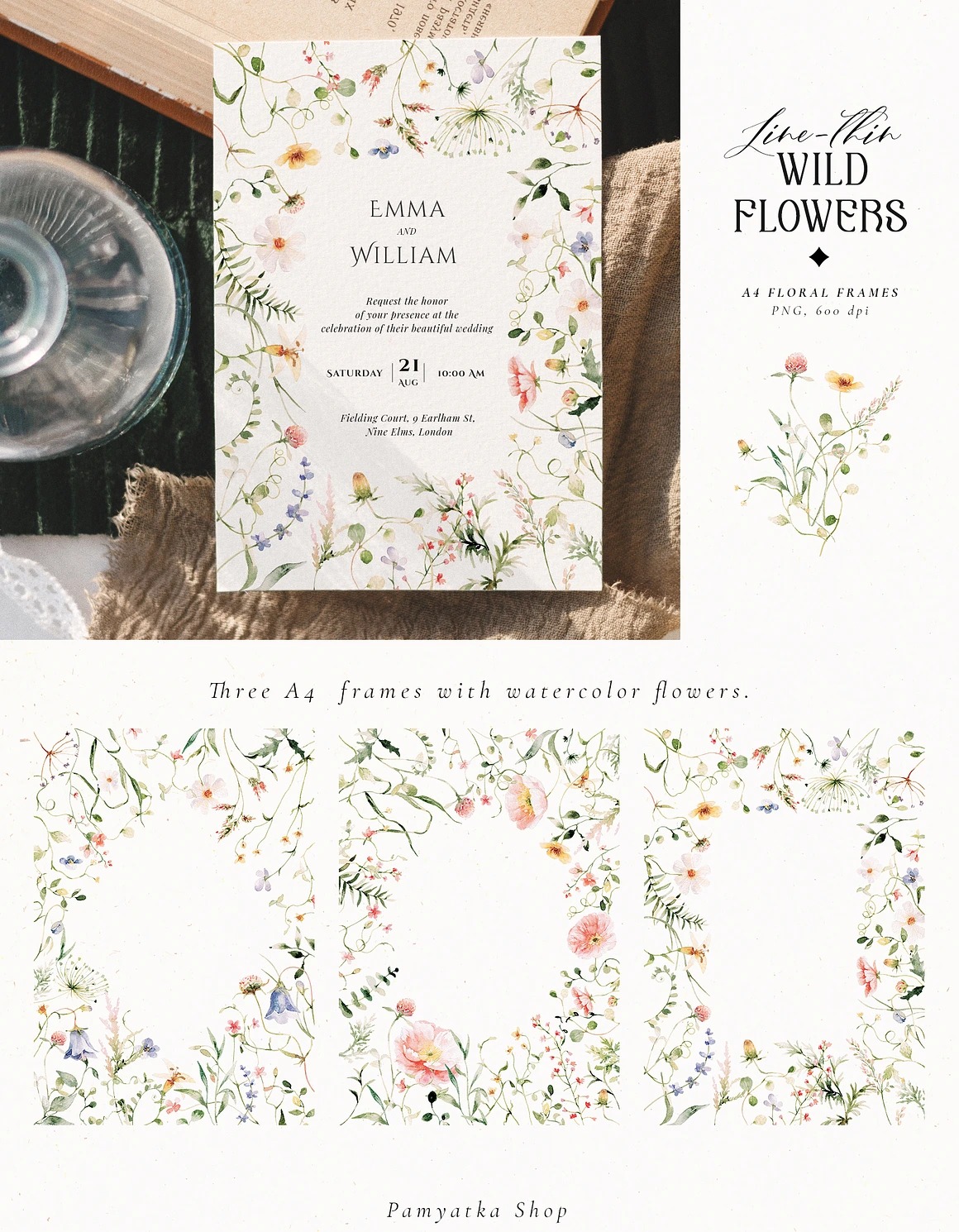 #160 - Hoa cỏ mùa xuân - Hoa mùa xuân - Thiệp cưới mùa xuân - Khung hoa - Bó hoa - Mùa xuân - Hoa vẽ màu nước