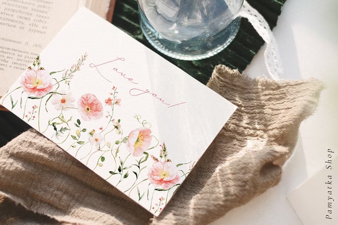 Đặt mua #160 - Hoa cỏ mùa xuân - Hoa mùa xuân - Thiệp cưới mùa xuân - Khung hoa - Bó hoa - Mùa xuân - Hoa vẽ màu nước