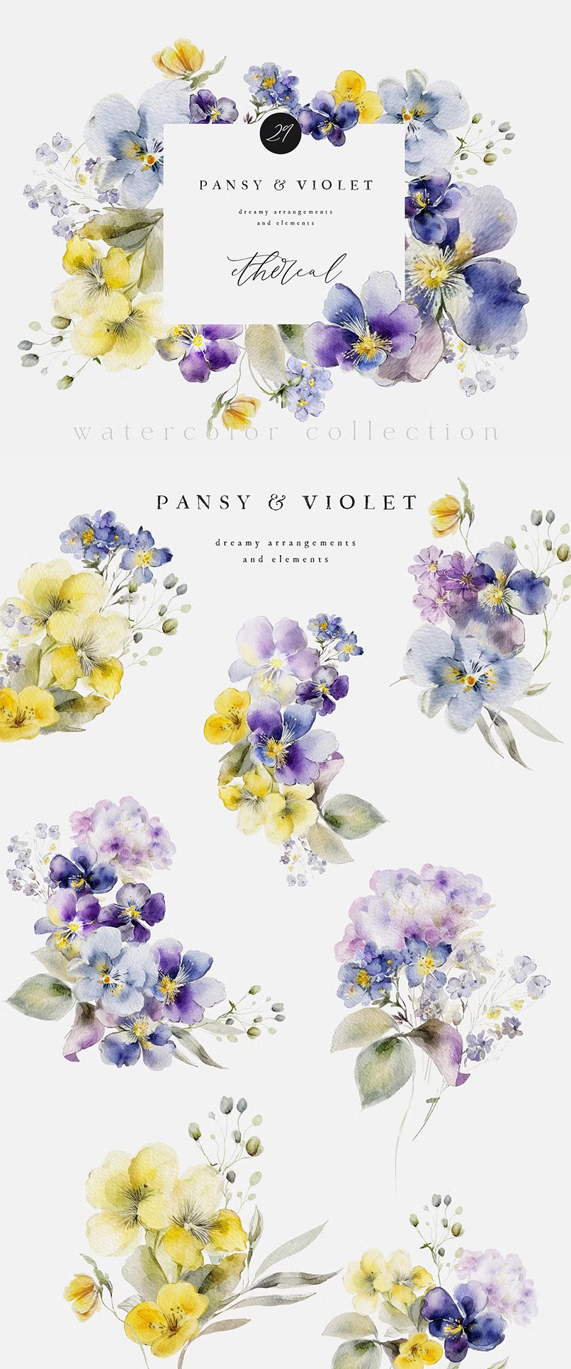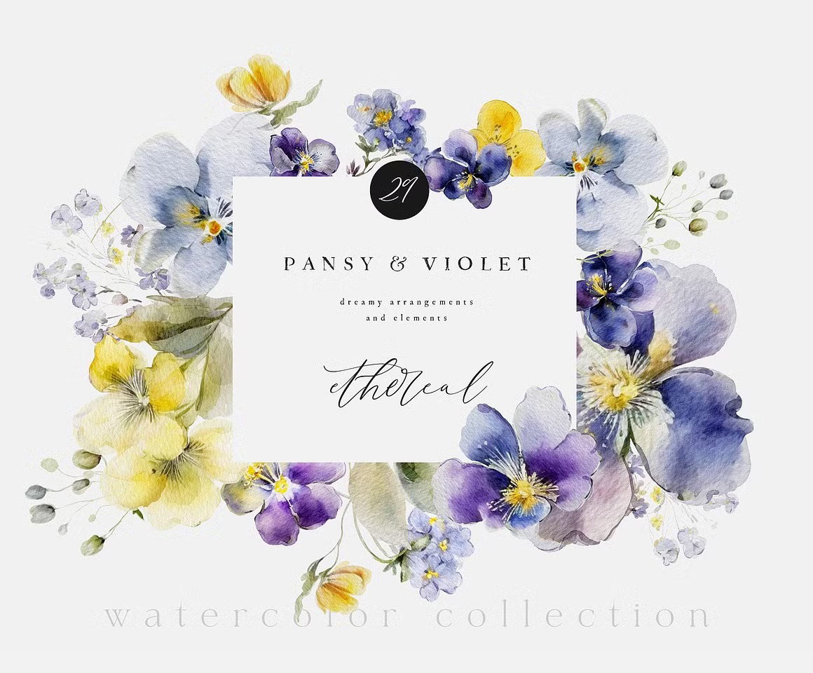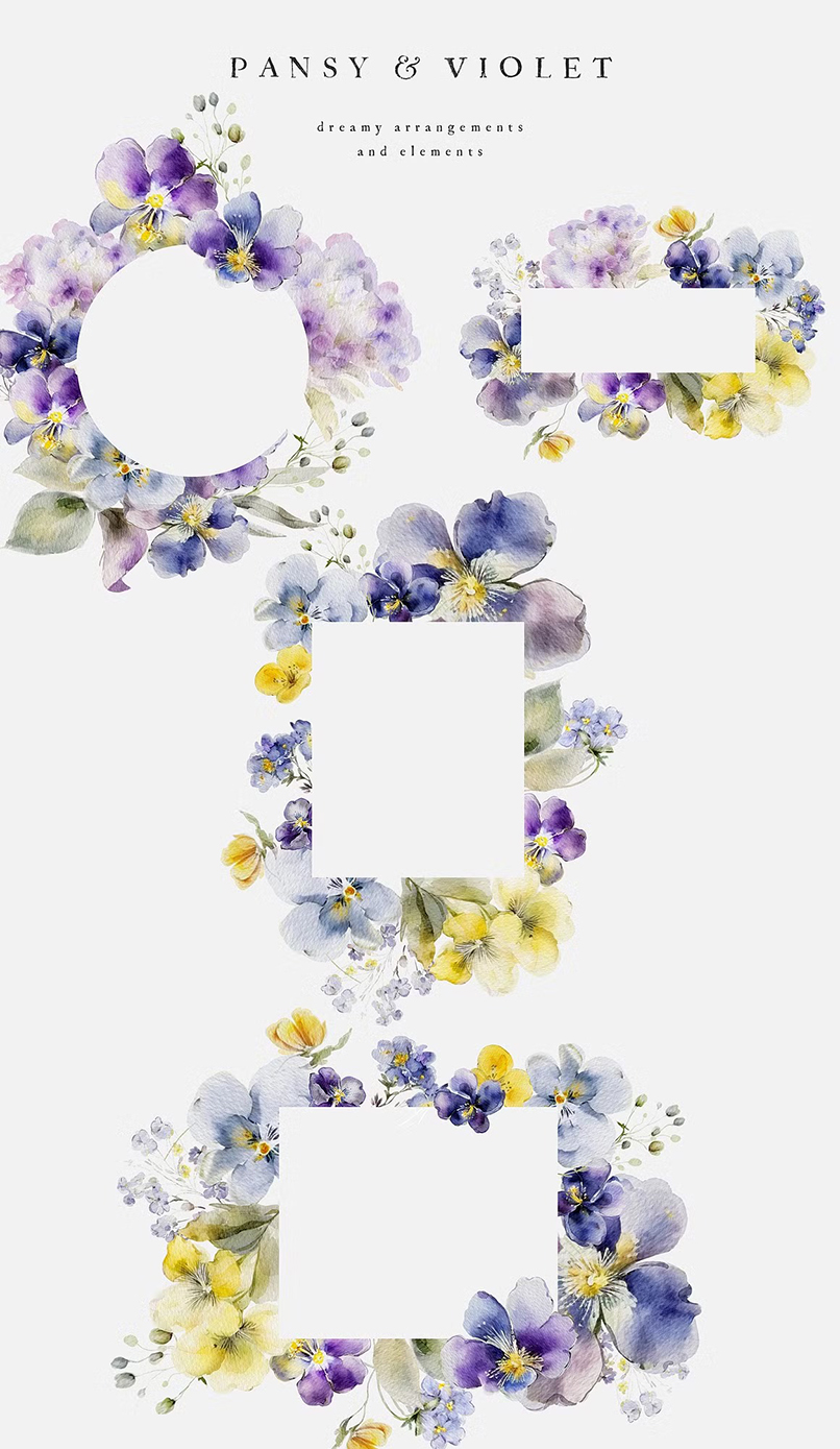 #179 Bộ sưu tập hoa mùa xuân – Sắc xuân màu nước – Thiệp hoa mùa xuân – Hoa vẽ màu nước
