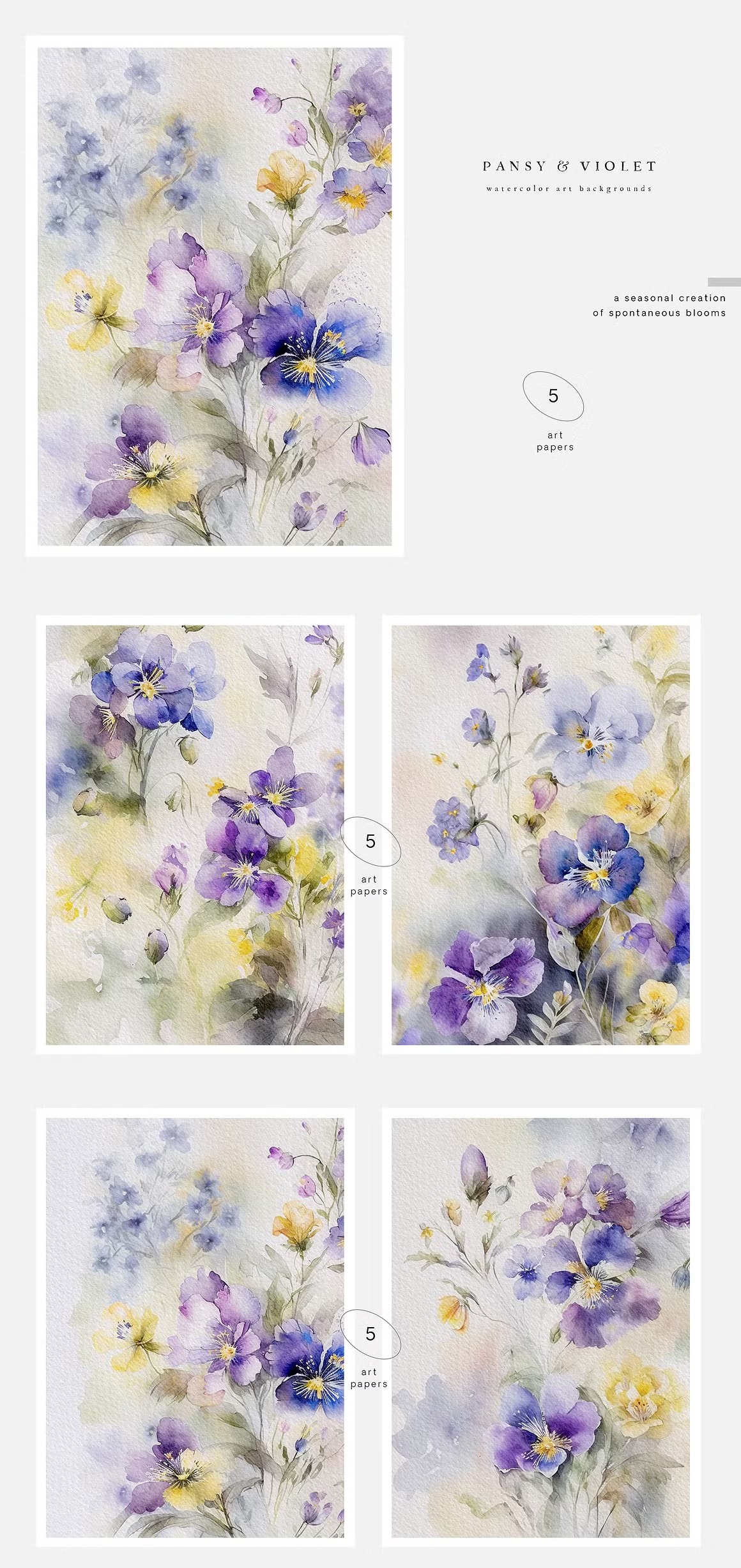 Đặt mua #179 Bộ sưu tập hoa mùa xuân - Sắc xuân màu nước - Thiệp hoa mùa xuân - Hoa vẽ màu nước