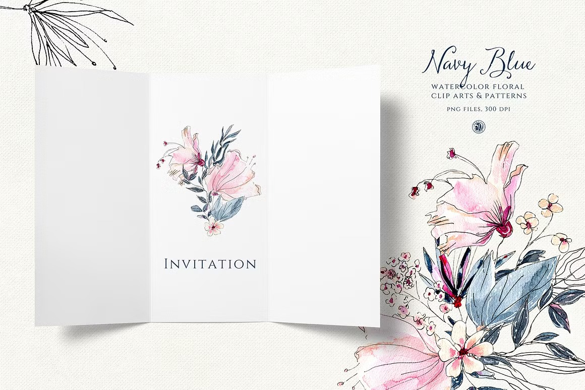 Đánh giá #193 Navy Blue/ Hoa màu xanh navy – Thiệp mời Navy – Hoa Blue