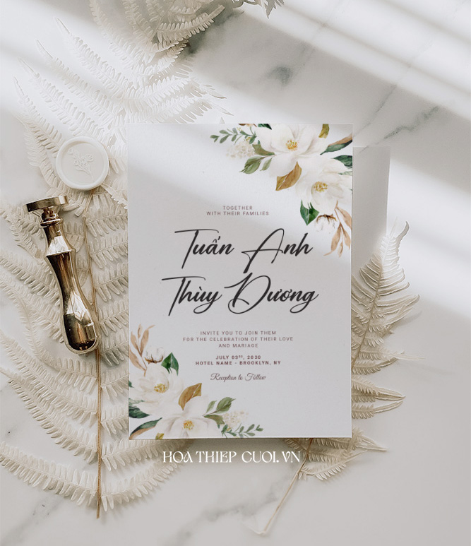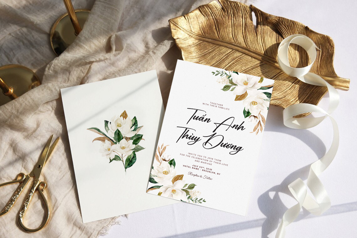 Đặt mua #217 Hoa mộc lan - Thiệp cưới hoa mộc lan - Magnolia - magnolia watercolor