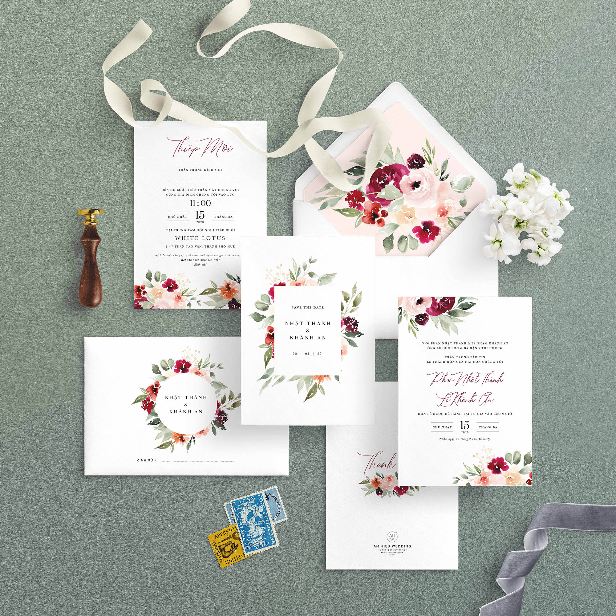 Đặt mua #233 Hoa thiệp cưới sắc hồng - Vẽ màu nước sắc hồng