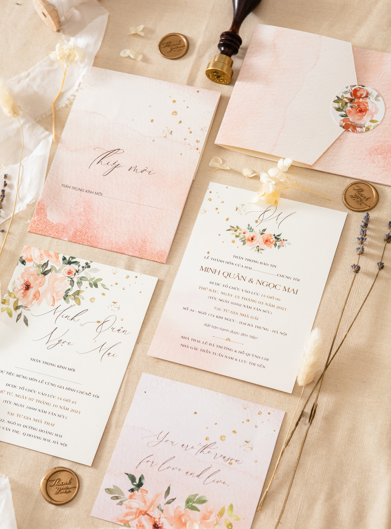 Đánh giá #238 Hoa sắc hồng – Thiệp cưới sắc hồng – Nhẹ nhàng – Sắc hồng – Mùa xuân