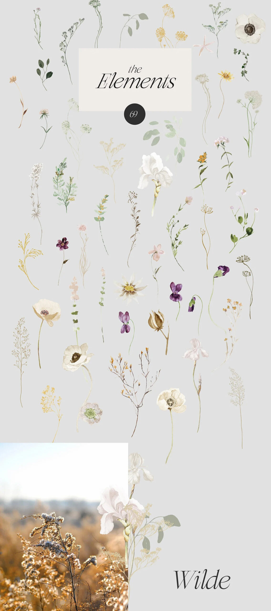 #240 Hoa màu nước nghệ thuật – Hoa dại – Hoa đồng quê – Hoa nghệ thuật đồng quê – Wedding