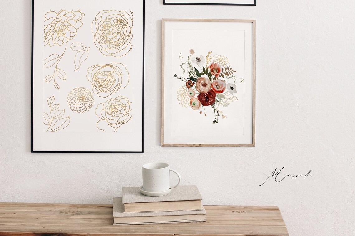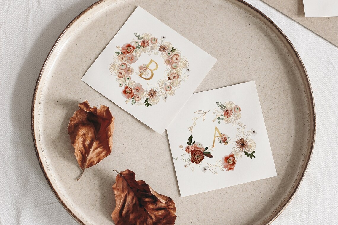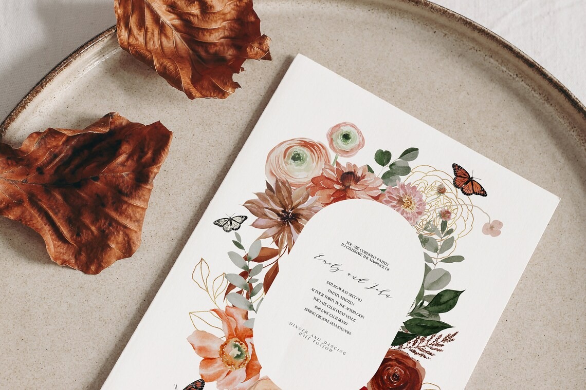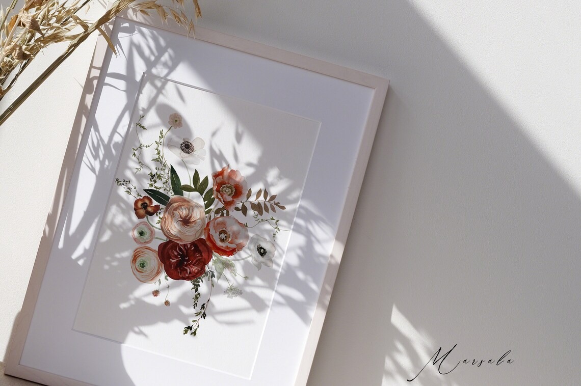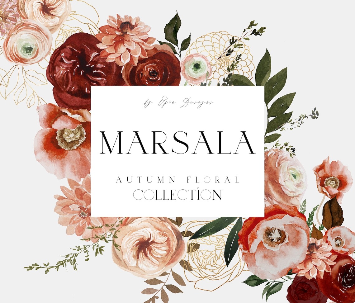 Đặt mua #245 Hoa màu nước đỏ tía - Hoa mùa thu - Mùa thu - Thiệp cưới mùa thu - Hoa đỏ tía