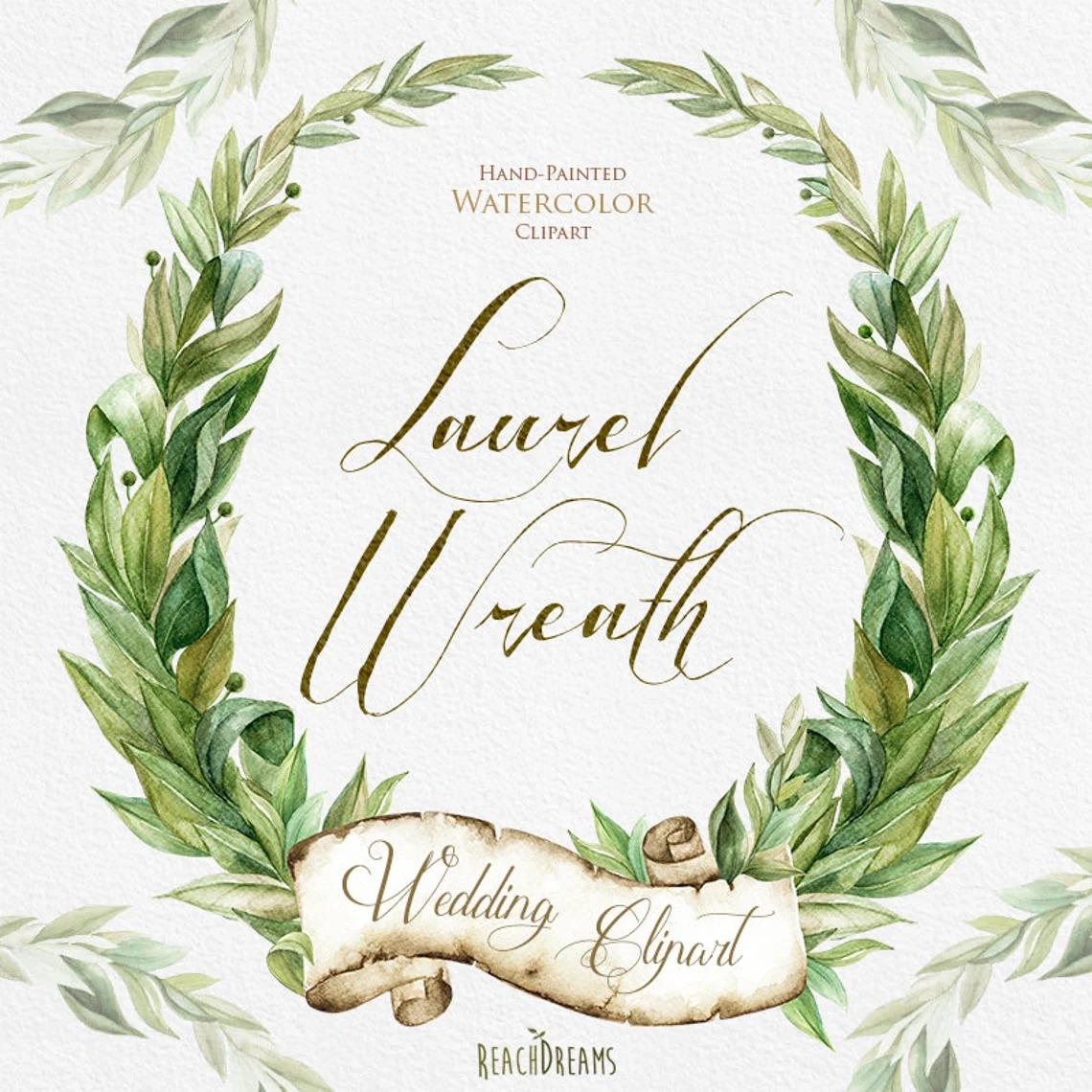 Đặt mua #247 Vòng nguyệt quế - Thiệp mời đám cưới lá xanh