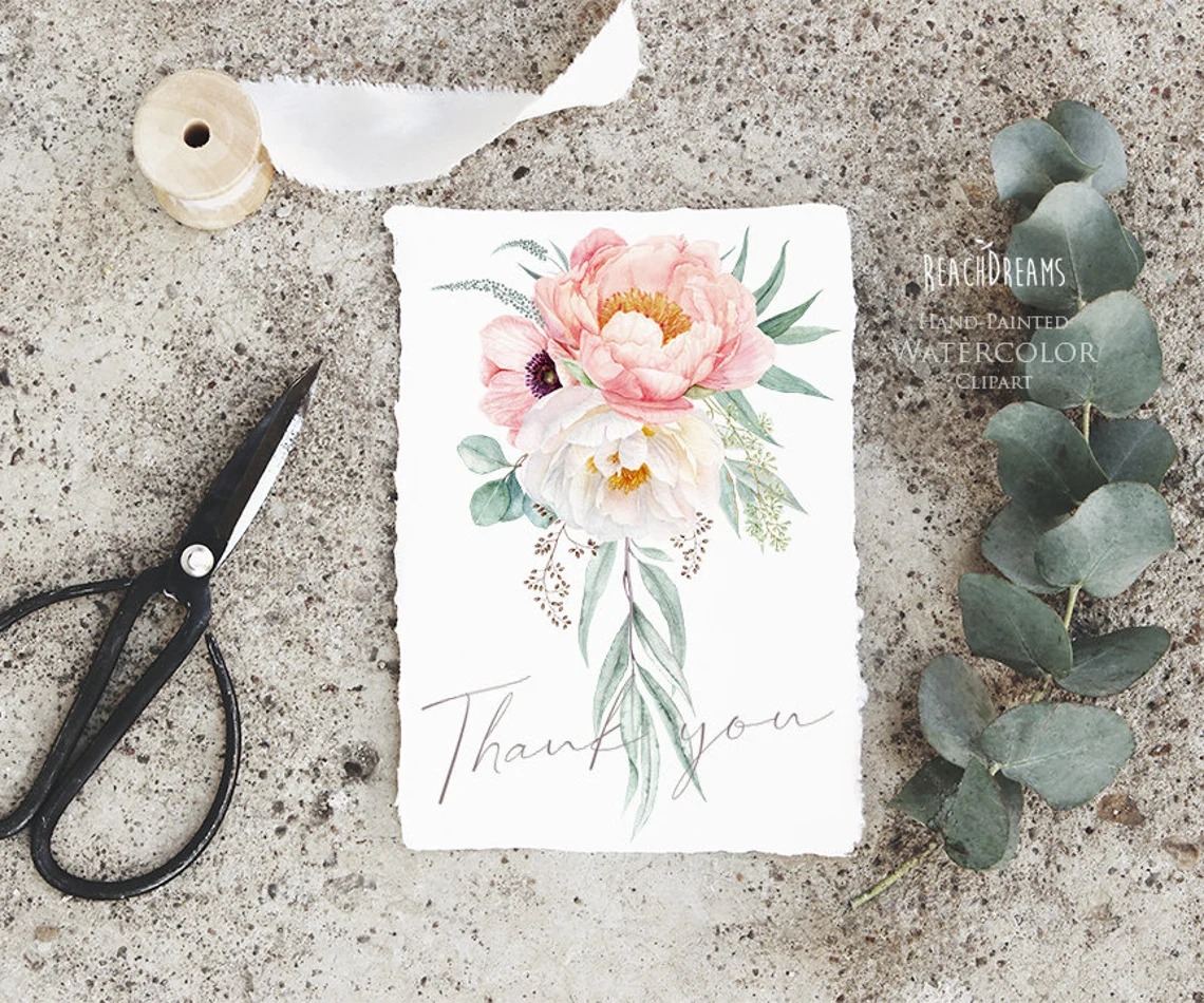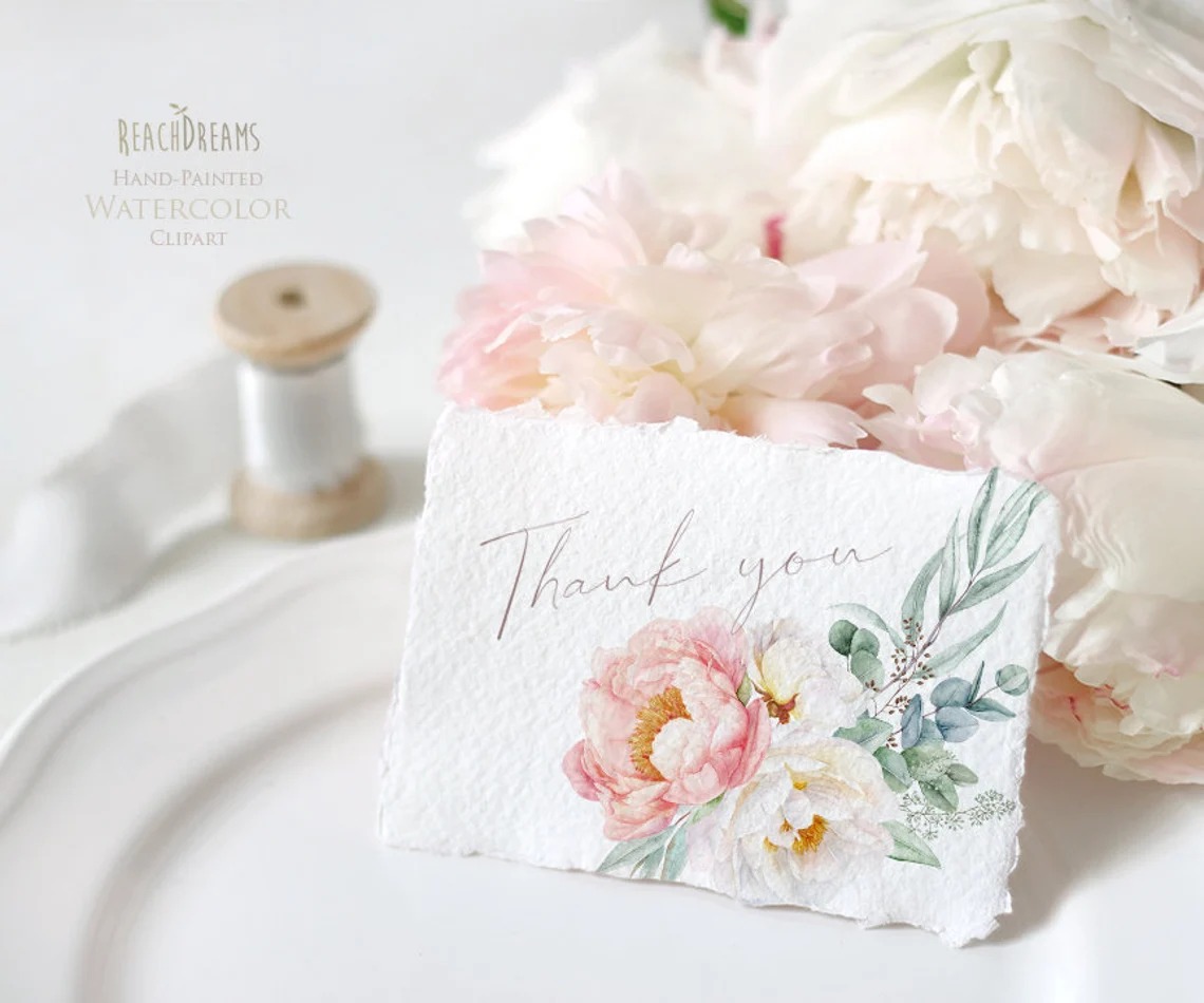 #253 Hoa mẫu đơn sắc hồng trắng – Màu nước hoa mẫu đơn – Thiệp hoa mẫu đơn