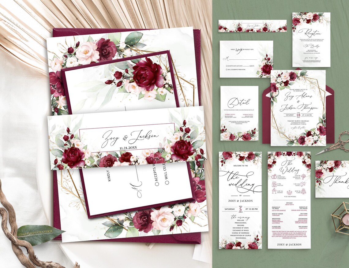 #279 Bộ sưu tập Thiệp cưới màu hồng phấn hoa, Mẫu thiệp cưới màu xanh – Thiệp cưới hồng tím – Save the date – Bìa thư