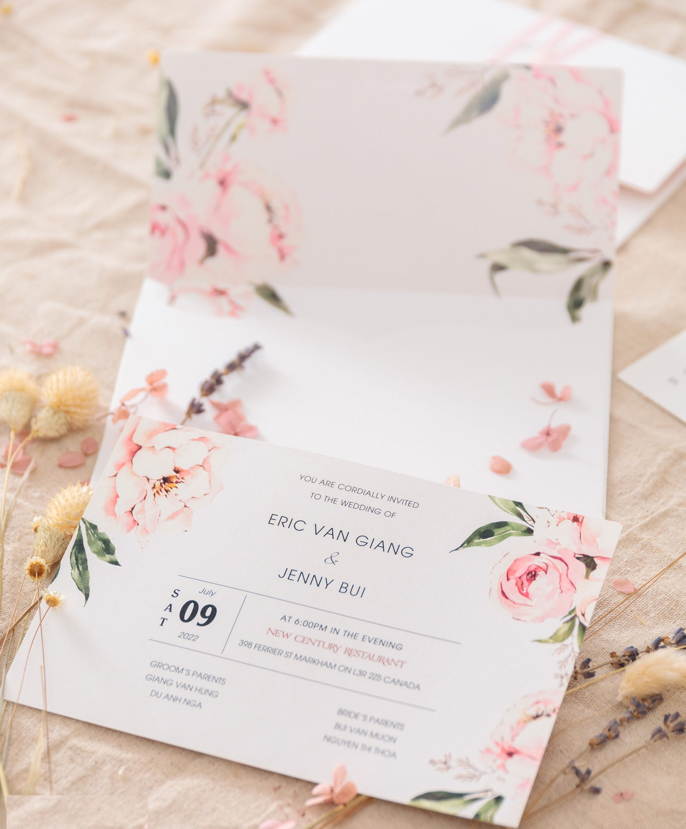 #295 Thiệp cưới hoa mẫu đơn sắc hồng