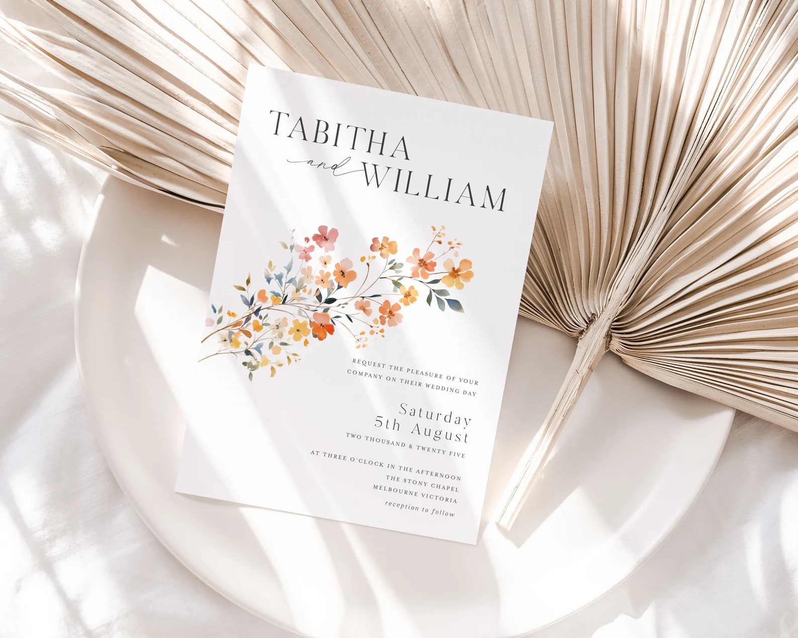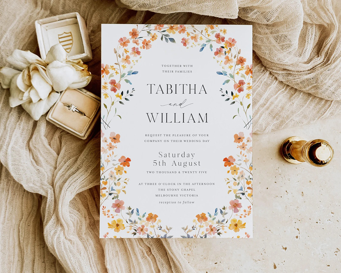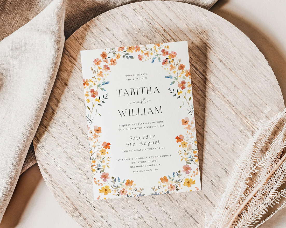 #353 C Thiệp mùa thu | Thiệp cưới sắc cam nhẹ | Hoa mùa hạ | Thiệp nhẹ nhàng | Wedding | Thiệp cưới | Hoa mùa thu | Thiệp hoa đồng cỏ | Hoa đồng cỏ | Bó hoa