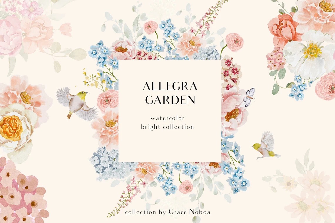 #56 Hoa mùa xuân màu nước – Hoa dại màu nước – Hoa tươi mùa xuân – Thiệp mời đám cưới – Hoa màu nước tươi sáng – Thiệp cưới mùa xuân