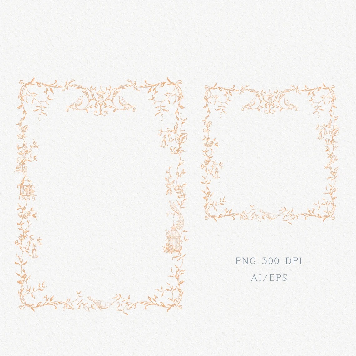 #79 Chinoiserie wedding floral frame – Fine line design, PNG, AI, Vector art