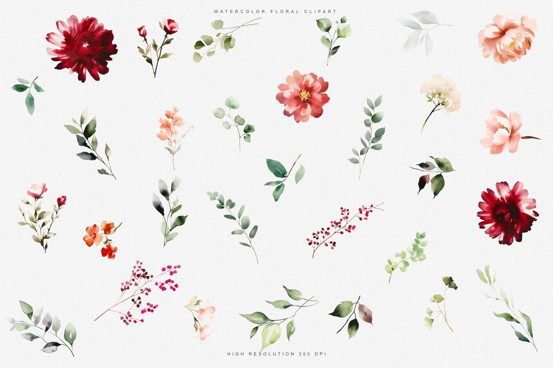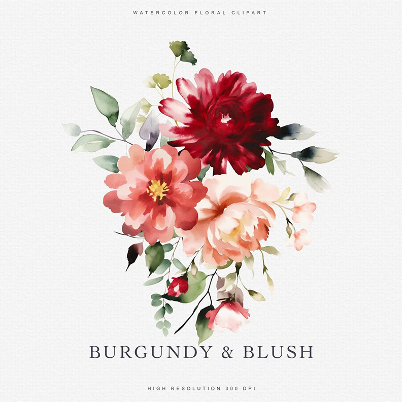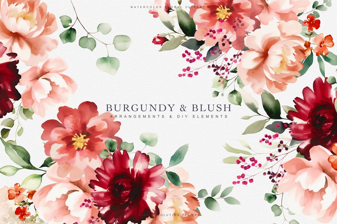 #90 Hoa màu nước – Mẫu hoa đỏ tía – Mẫu hoa hồng – Hoa lãng mạn – Hoa đám cưới – Hoa hồng, mẫu đơn