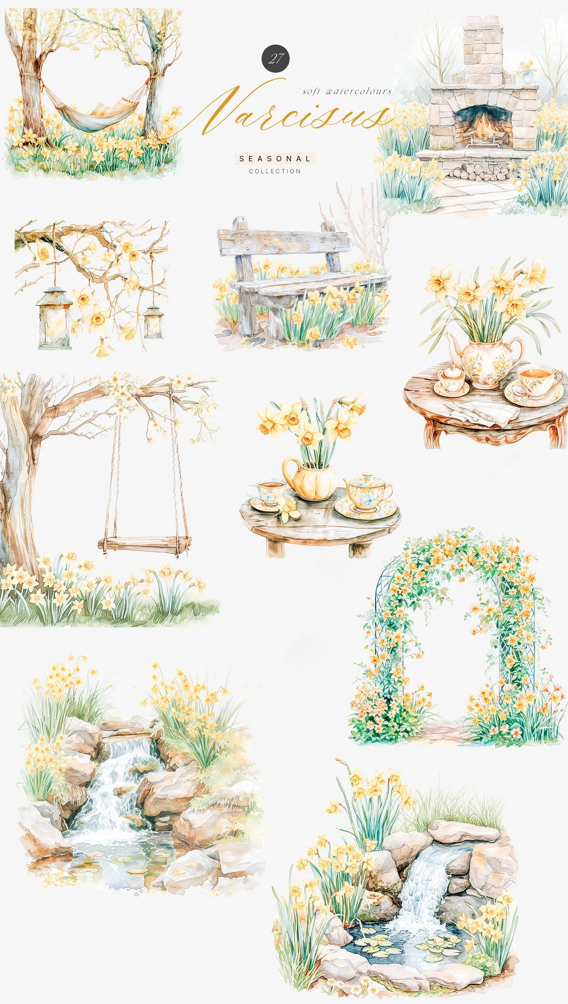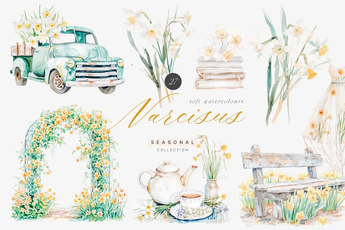 Đặt mua #96 Hoa màu nước - Hoa mùa xuân - Thiệp cưới mùa xuân - Trang trí mùa xuân tươi mát