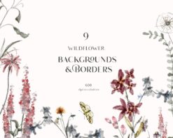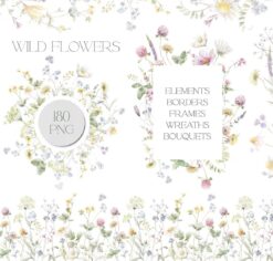 #51 Nghệ thuật hoa dại màu nước – nghệ thuật vòng hoa vườn màu nước – Minh họa hoa dại mùa hè – hoa PNG