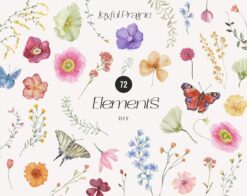 #56 Hoa mùa xuân màu nước – Hoa dại màu nước – Hoa tươi mùa xuân – Thiệp mời đám cưới – Hoa màu nước tươi sáng – Thiệp cưới mùa xuân