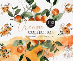 #224 Bộ sưu tập màu cam màu nước, Vòng hoa màu cam, Khung màu nước, nghệ thuật màu cam, màu nước