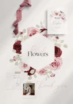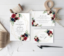 #218 Hoa mẫu đơn với tông đỏ đậm + xanh navy – Thiệp mời – Trang trí – Thiệp cưới – Nhận diện thương hiệu