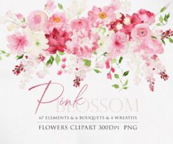 #236 Hoa thiệp cưới sắc hồng – Hoa vẽ màu nước