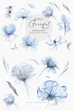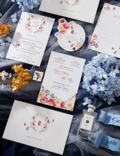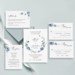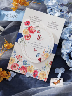 #124 Hoa màu xanh bụi – Hoa màu xanh navy – Thiệp cưới xanh navy