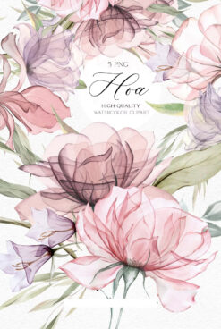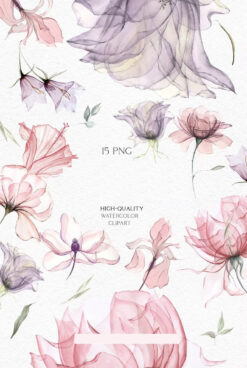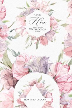#112 Bộ màu nước hoa đinh hương sắc hồng – Hoa đinh hương – Hoa mùa xuân – Hoa hồng bụi – Hoa thiệp mời