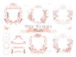 #107 Pink Florals – Floral Crest – Pink Rose – Watercolor Crest PNG
