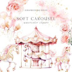 #104 Tư liệu thiệp sinh nhật – Thiệp thôi nôi – Thiệp mời dễ thương – Vòng xoay ngựa gỗ – Thiệp bé gái tông hồng