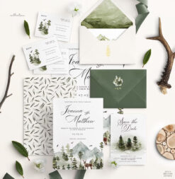 #46 Bộ thiệp cưới hoa xanh, Bộ thiệp cưới hoa Cottage, Thiệp cưới sân vườn