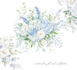 #317 Bó hoa màu xanh bụi màu nước, Bó hoa, Cổng hoa, Hoa hồng trắng xanh bụi, Hoa cưới màu nước