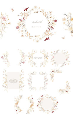 #320 Bộ sưu tập hoa dại – Hoa mùa thu – Vườn hoa thiệp cưới – Viền hoa, Hoa thiệp cưới – Thiệp cưới sắc thu