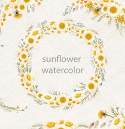 #261 Hoa mùa xuân – Vòng hoa nguyệt quế – Hoa hướng dương – Sắc vàng