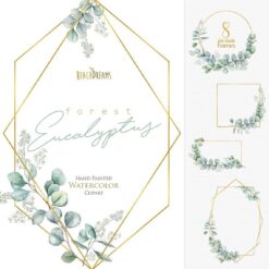 #257 Khung bạch đàn, hoa hình học màu nước, lá cây, cây xanh, vàng, đám cưới, cô dâu, thiên nhiên, cành cây, lá nhẹ nhàng