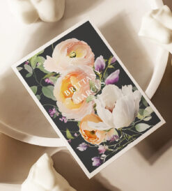#182 Bộ sưu tập hoa mùa xuân – Sắc xuân màu nước – Thiệp hoa mùa xuân – Hoa vẽ màu nước / White and Gold
