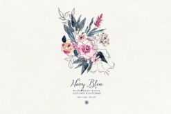 #184 Hoa màu xanh – Hoa bông tuyết – Thiệp cưới mùa đông – Blue Watercolor