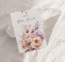 #192 Bộ sưu tập hoa sắc hồng tinh tế – Thiệp cưới vẽ màu nước ấn tượng.