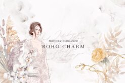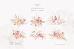 #162 Bộ sưu tập minh họa màu nước mùa thu – Hoa lan đỏ – Hoa hồng phấn – Cành cọ lau – Thiệp mùa thu hạnh phúc